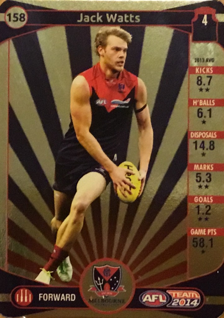 Standing at 196cm tall and highly athletic, Watts was considered the ultimate utility in his draft year. As such, he was selected by the Melbourne Football Club with Pick 1 in the 2008 AFL Draft. His height and athleticism provided the ability to play in almost any position on the ground. Jack would go on to play 152 games for Melbourne over 9 seasons before moving to Port Adelaide where he added another 21 games to the tally.