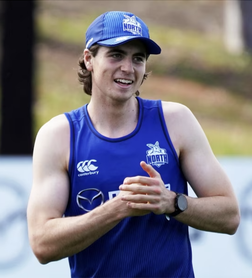 Tom is hard working footballer who was drafted by North Melbourne as a SSP selection in late February 2026 and incredibly debuted just over two later; talk about making an immediate impact and what a debut it was with 23 touches in a win. Tom played juniors at East Sandringham before progressing to teams including Brighton Grammar, Sandringham Dragons, Sandringham VFL and Frankston VFL where he won the 2025 VFL rising star.
